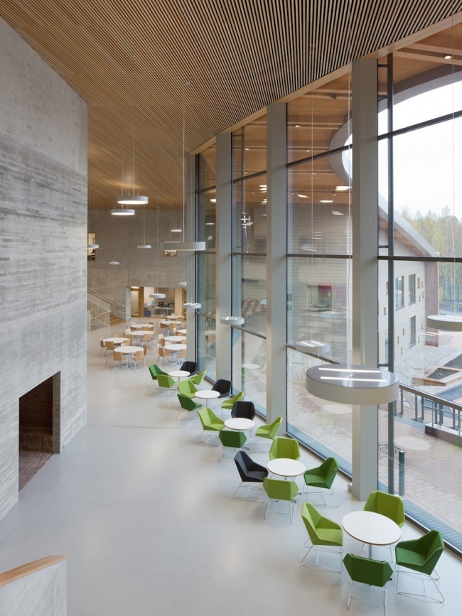 À l’école Saunalahti, qui se trouve dans la ville finlandaise d’Espoo, les enseignants ont décidé de changer un peu cette histoire : tout d’abord, le bâtiment est très différent de celui d’une école typique, on dirait plutôt un musée d’art moderne. Les professionnels de VERSTAS Architects ont complètement abandonné la structure typique et ennuyeuse, et réinventé l’agencement habituel des salles de classe.